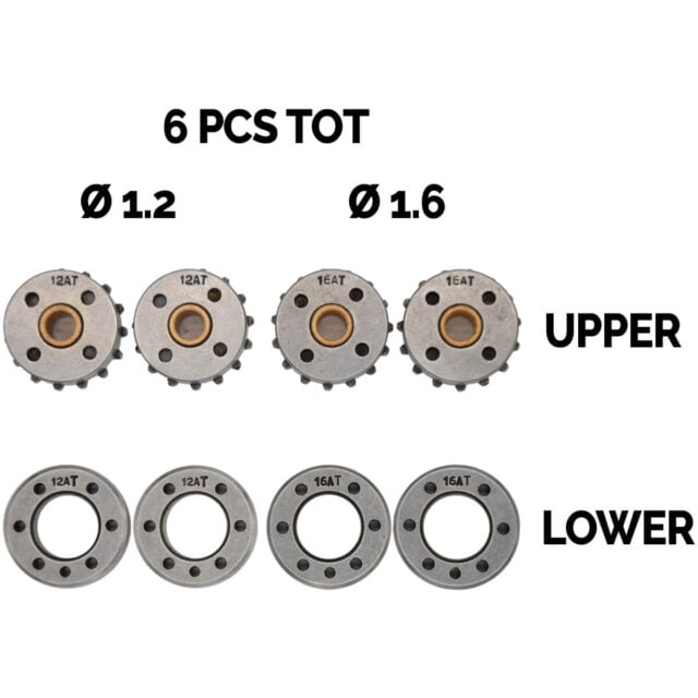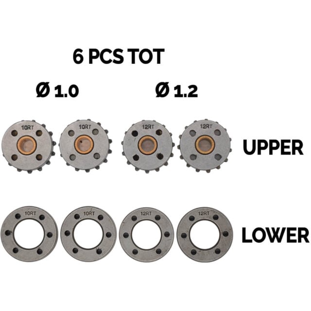 Fülldraht-Kit (4 DV-Rollen Dopplerspur TWIN-Rollen) für Draht-Ø 1,0/1,2 mm und Zahnradset für Fülldrähte