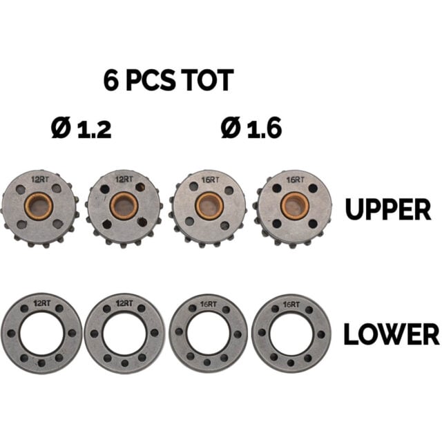 Fülldraht-Kit (4 DV-Rollen Dopplerspur TWIN-Rollen) für Draht-Ø 1,2/1,6 mm und Zahnradset für Fülldrähte